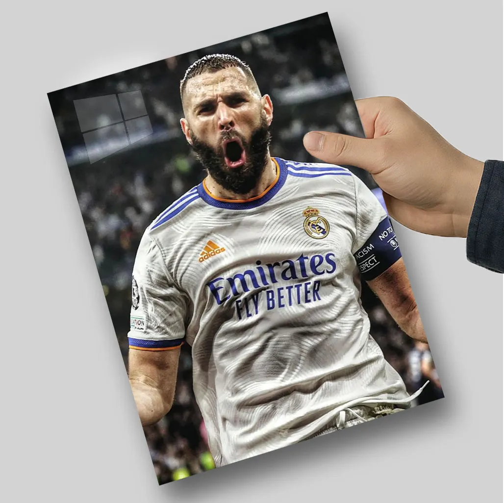 این طرح، ترکیبی از شخصیت آرام، قدرت ذهنی و کلاس بازی بنزما را نمایش میدهد. چاپ روی آلومینیوم باعث میشود تصویر شفاف، عمیق و بسیار بادوام باشد و جلوهای حرفهایتر از پوسترهای کاغذی معمولی داشته باشد.
