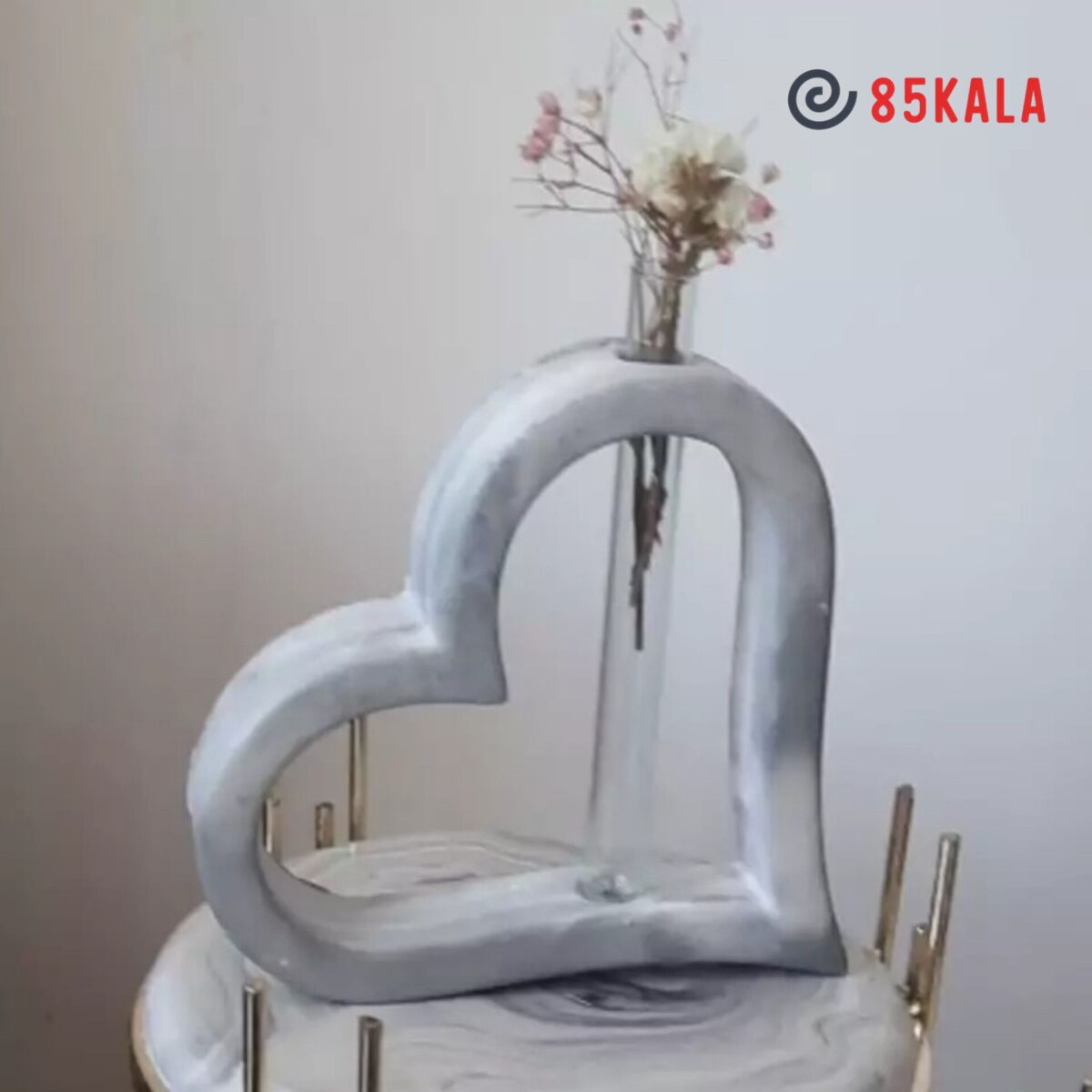 توضیحات محصول: گلجای قلبی سنگ مصنوعی – تلفیق هنر و زیبایی در دکوراسیون